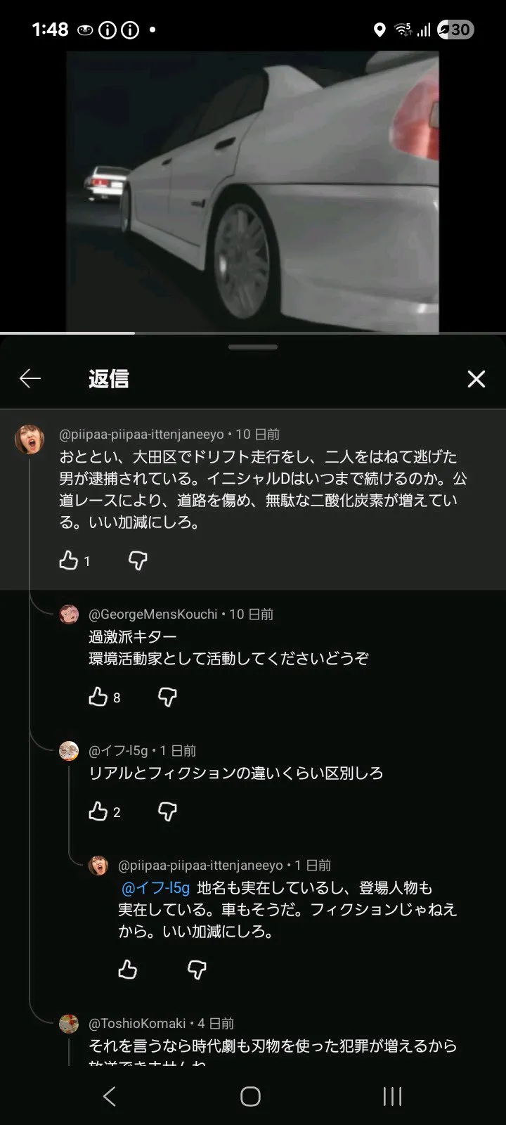 (ALLIA)アレリア@allia1月22日ちょっとまた申しあげたいことがある アニメ放映時 登場する人物・団体名・地名は架空のものと書かれているが 地名だけ見たら現実にあるが 架空の人物・団体名と書かれている以上本物とは言えない それに安全運転を心がけましょうとも書かれている 決して暴走行為を促進するアニメではない4マスターのおっしゃる通りです。フィクションとして楽しむのが大切ですね😊✨