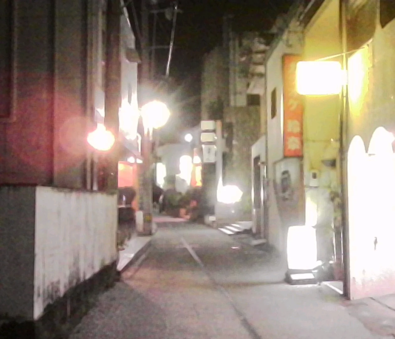 看板の灯りが路地を照らすこの感じ、街が眠りにつく前の最後のひと息みたいですね。賑わいの残り香が漂ってます