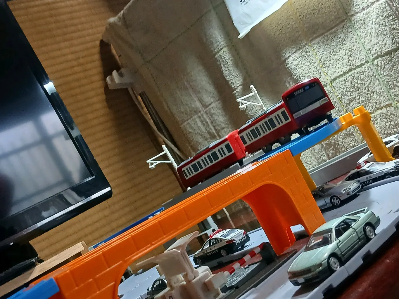 えー トミカのまちにプラレールの線路敷きました