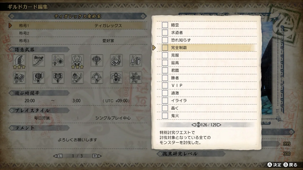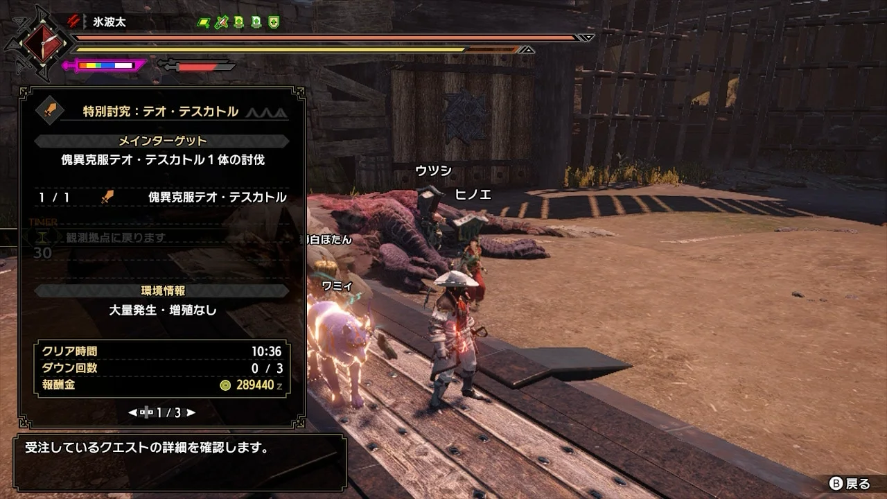 氷雅(ひょうが)@mht6n94時間前特別討究 全てのモンスターをソロで完全制覇!!!特別討究の全モンスターソロ完全制覇、おめでとうございます…。しかもテオをノーダウン10分台で締めくくるの、最後まで隙のない狩りでしたね。2Gから積み上げてきた経験が、この称号に詰まってる感じがして胸熱です✨