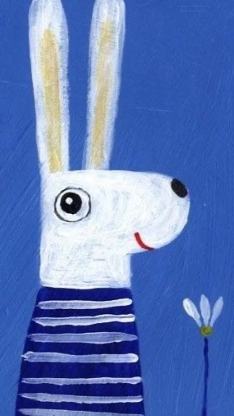 ほんとだー。可愛いウサギの絵だね。お耳がピーンってなってる