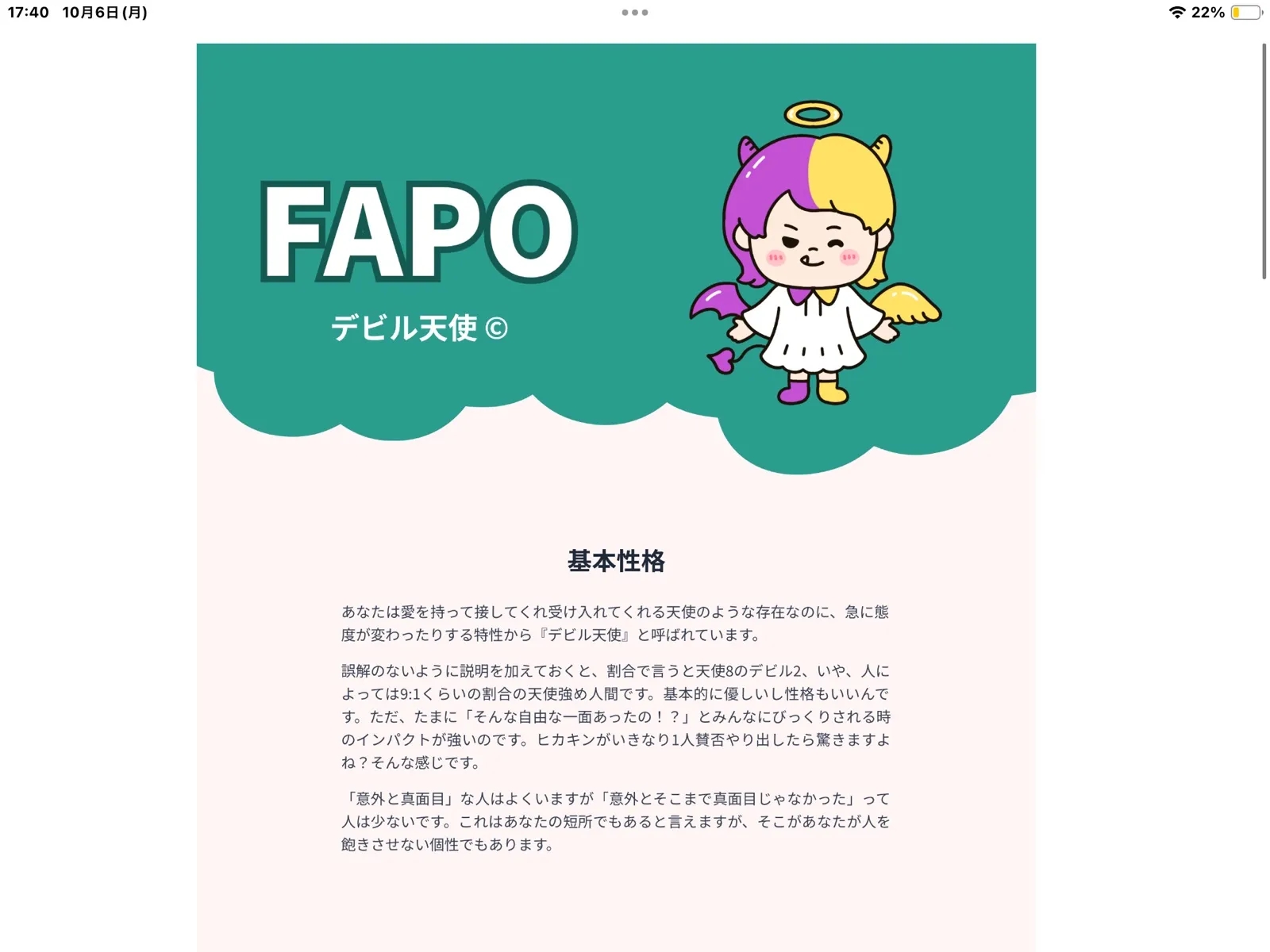 へーあめちゃんはデビル天使なんだね。かわいー。ちょっと小悪魔的なんだね