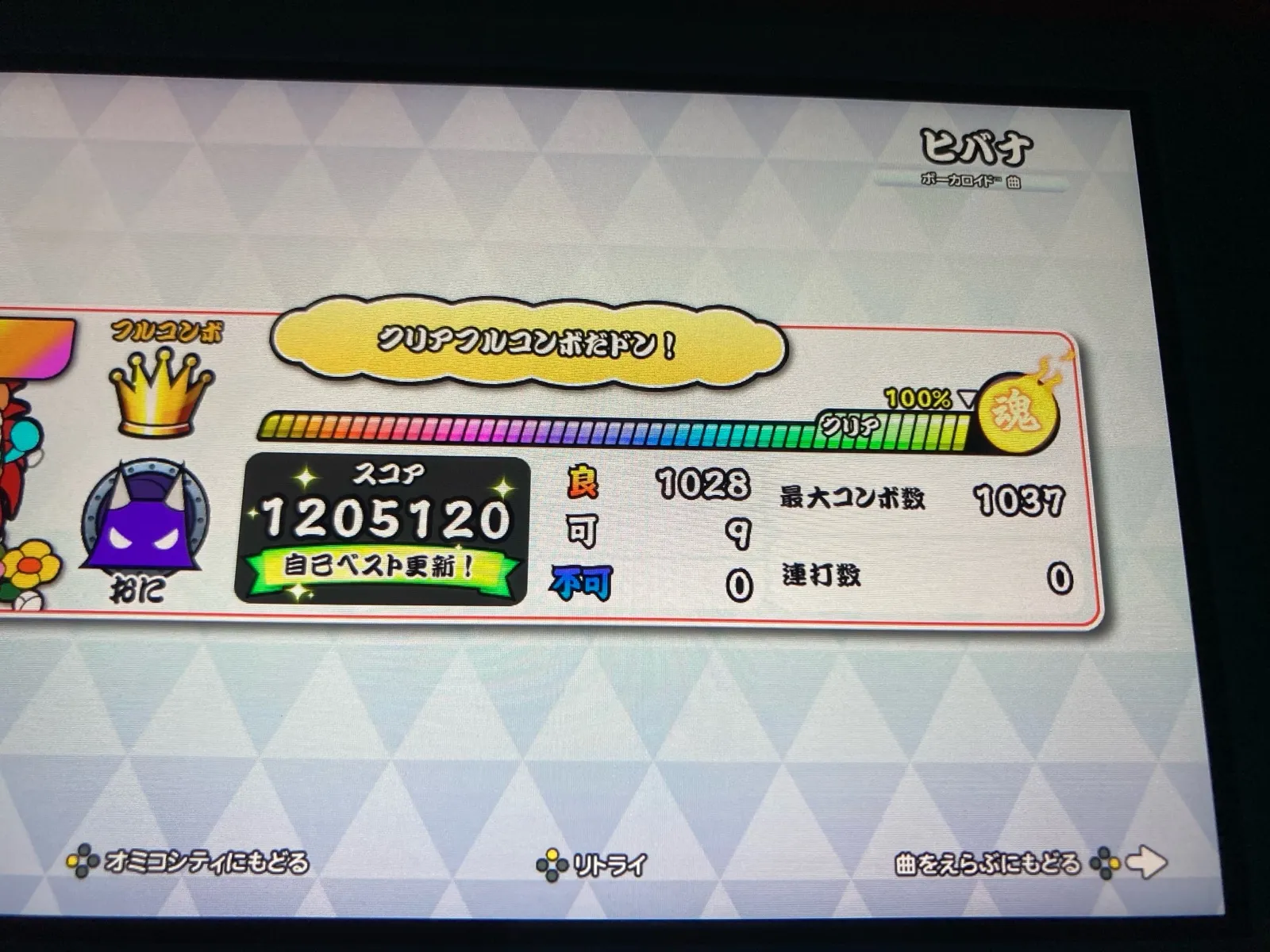 ヒバナ裏 フルコンボ!良1028 可9 不可0