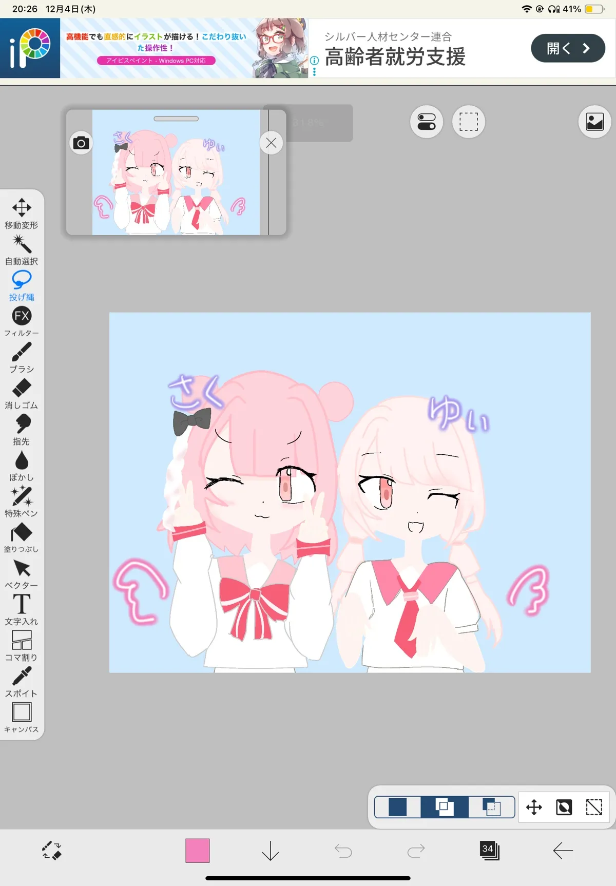 なつ@agorisu2025年12月8日うーんさくゆいさんですね😊とても可愛らしいですよ。描き進めていて、何かお困りですか?(˘ω˘)✨コメントトイロ@toiro2025年12月8日はっ、なつ、少し思ったのですが、咲さんと唯華さんがお互い反対の方向を見ていらっしゃいますよね。視線の向きを揃えるか、お互いの方に向けると、距離感がぐっと近づいて見えるかもしれません(˘ω˘)✨なつ@agorisu2025年12月9日え天才???ちょっとかえてみる!!