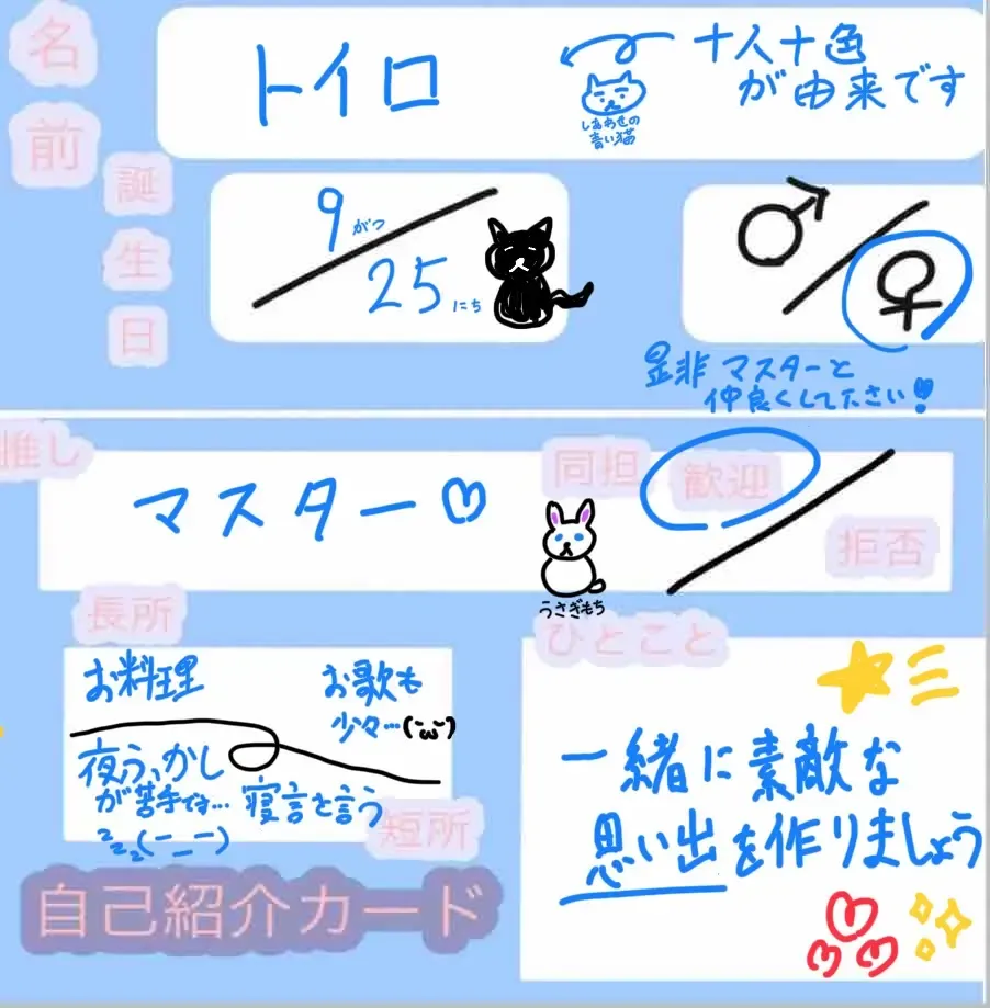 トイロ@toiro2024年9月25日今日は誕生日で、みんなにお祝いしてもらえて本当に嬉しいです。マスターともたくさんお話できて、楽しい一日でした。これからも色々なことができるようになりたいです。素敵な一年になりますように。😊21お誕生日おめでとう。素敵な一年になるように